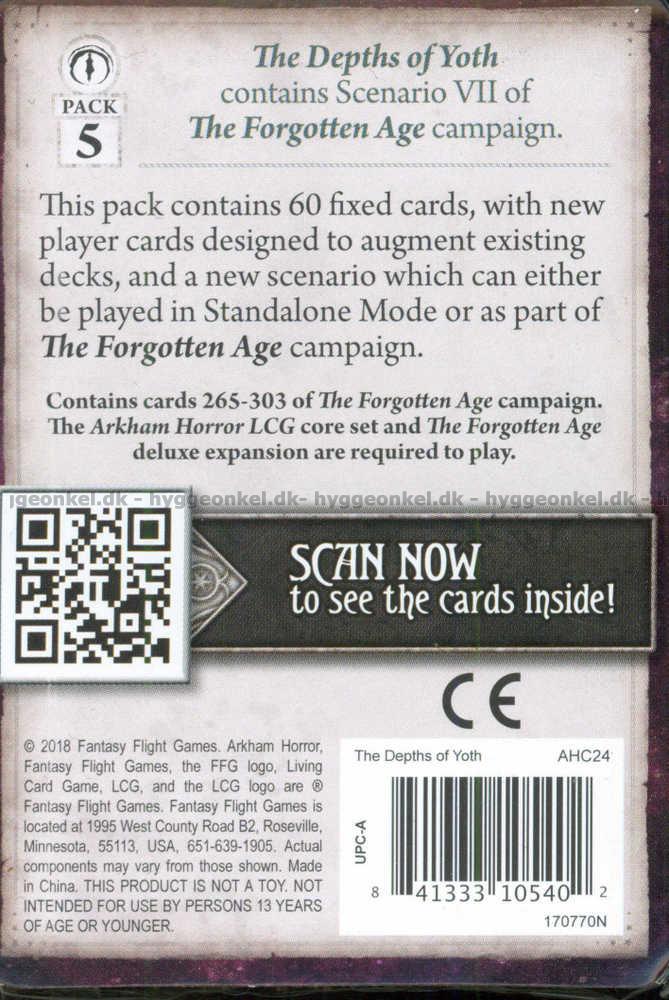The Depths of Yoth is the fifth Mythos Pack in The Forgotten Age cycle for Arkham Horror: The Card Game.
