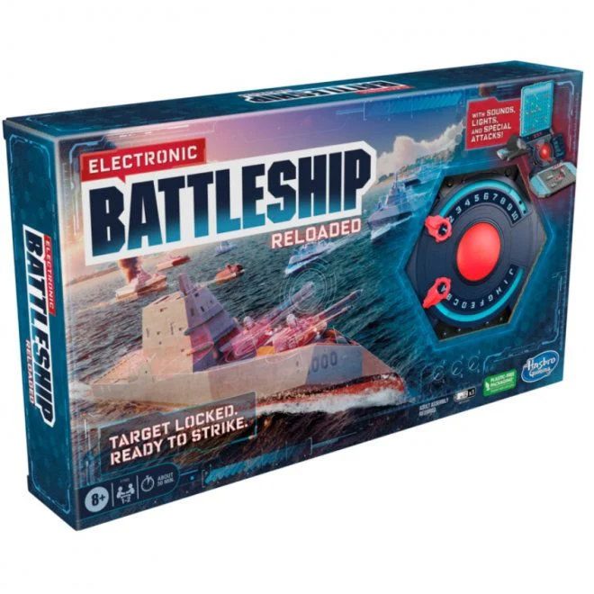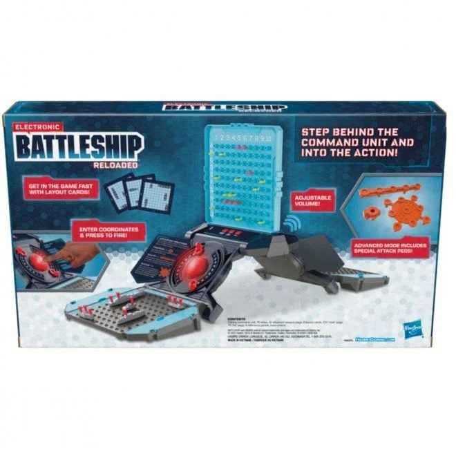 Step behind the control panel and into the action with the Electronic Battleship game, as each player is out to destroy their opponent’s fleet before their own is destroyed. This edition of the classic game of naval combat features an easier set up than previous versions of the Electronic Battleship game. With up to 64 preset layouts and an option for custom layouts, the battle will change all the time! Brace for battle as electronic voice commands and sound effects signal a search-and-destroy mission to take out opponent’s ships! Play solo or take on a friend in the incredible game of Battleship!