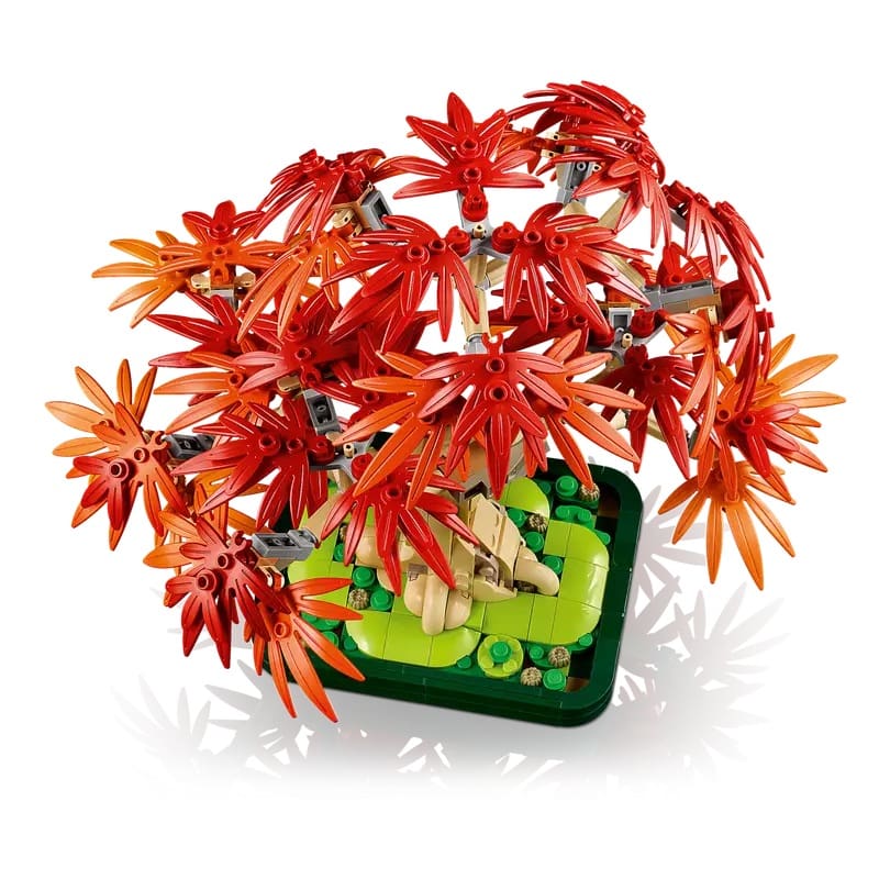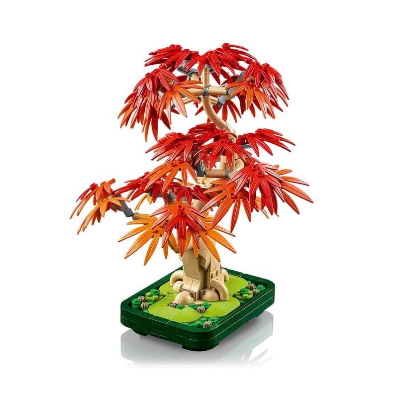 - An intricately designed LEGO® bonsai tree featuring vibrant red and amber leaves, perfectly capturing the natural beauty of a real Japanese maple bonsai.