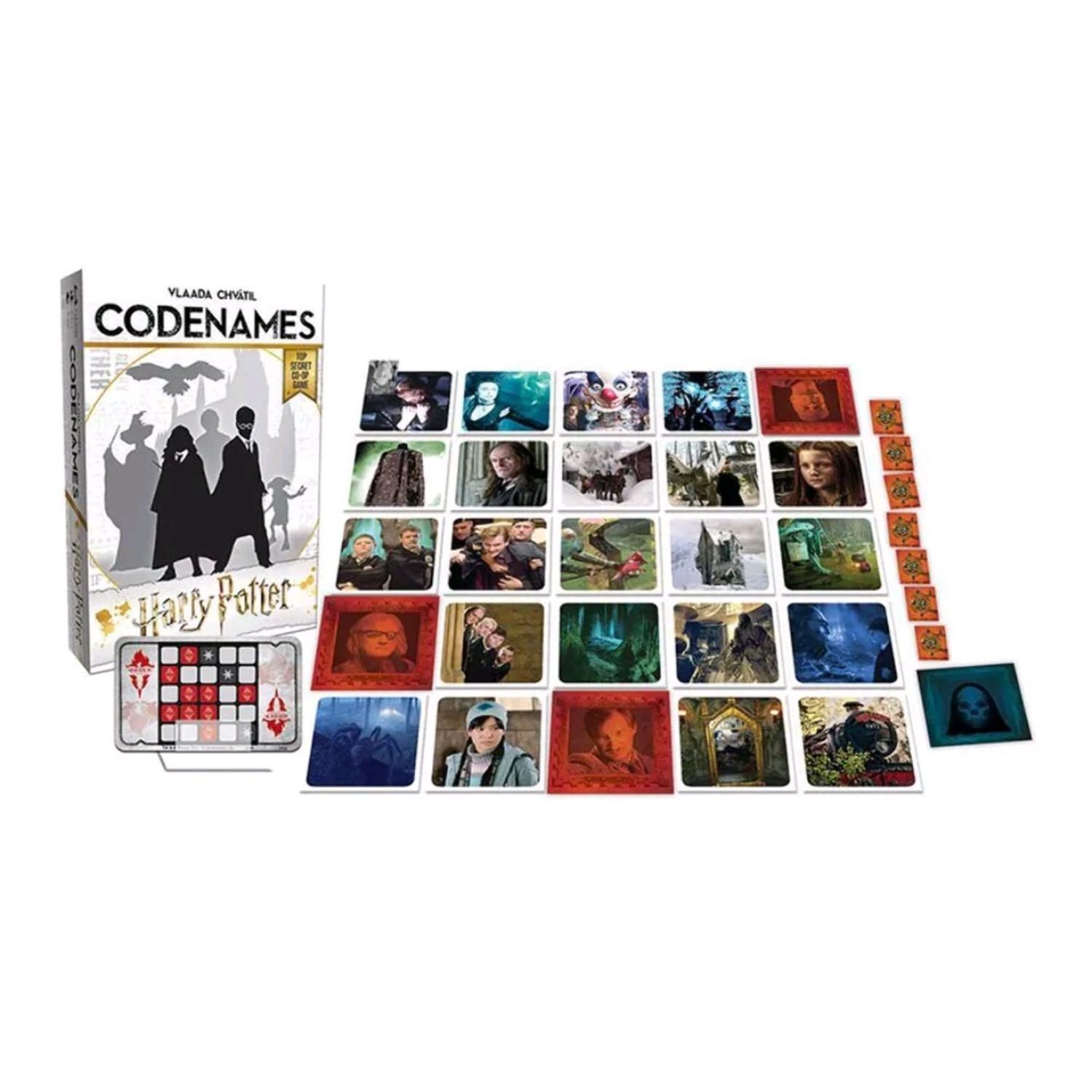 Codenames: Harry Potter features the gameplay from Codenames Duet, with players working together to reveal all the right cards before they run out of time or summon Lord Voldemort or another dark wizard.