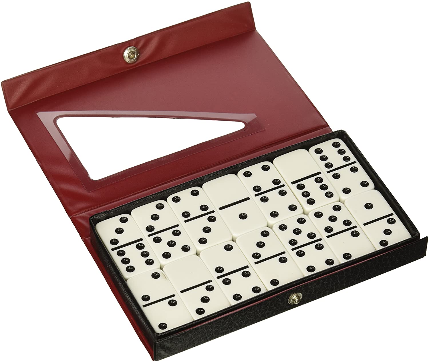 Double 6 jumbo size ivory color dominoes in vinyl case.