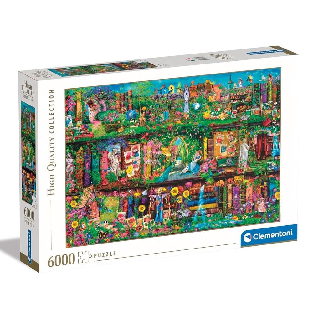 Discover a world of fantasy with the Garden Shelf 6000-Piece Puzzle by Clementoni — now available at Mind Games!