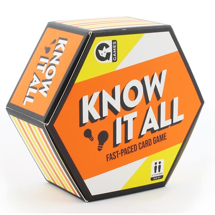 The perfect game for low-tech family fun! Who can list the most answers in the time allowed? Compact in size, so you can easily fit it in your suitcase for the next vacation, or keep it in the car, so you can break it out during the next road trip. Know it All Fast-Paced Trivia Game, is a battle of wits and speed, and some knowledge of pop-culture will get you far!