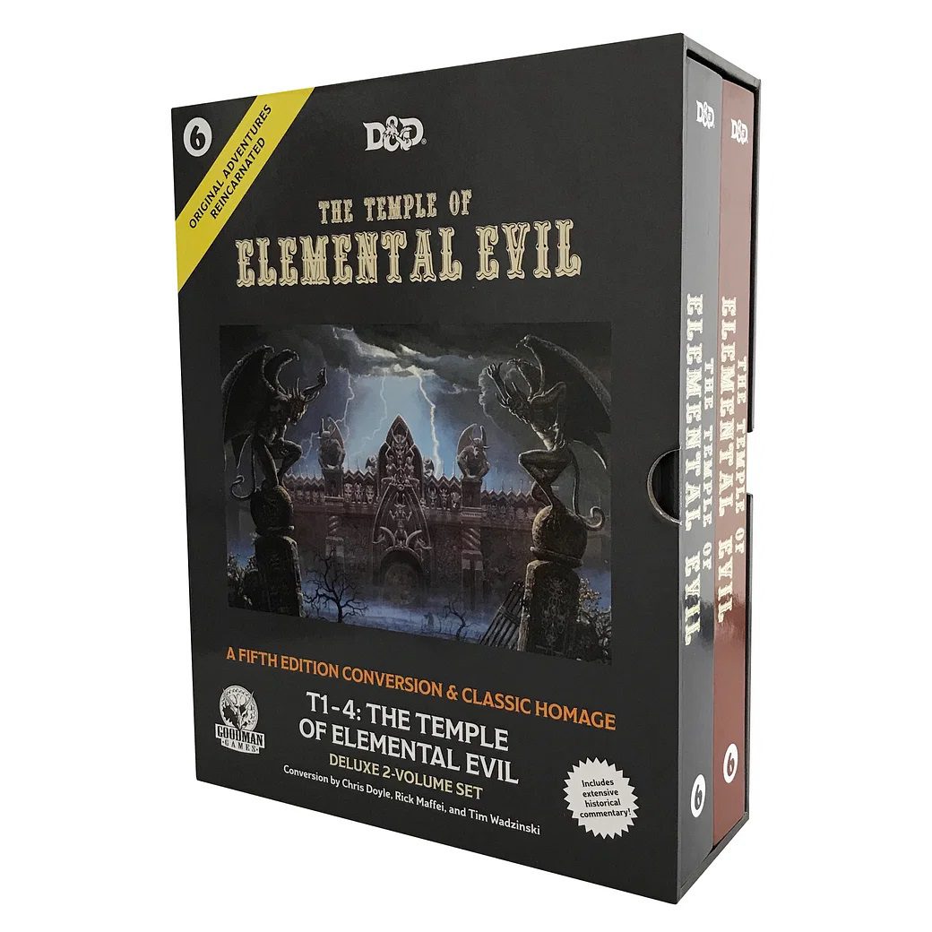 • The entire adventure is an homage to the origins of an adventure that began decades ago with T1: The Village of Hommlet and T1-4: The Temple of Elemental Evil.