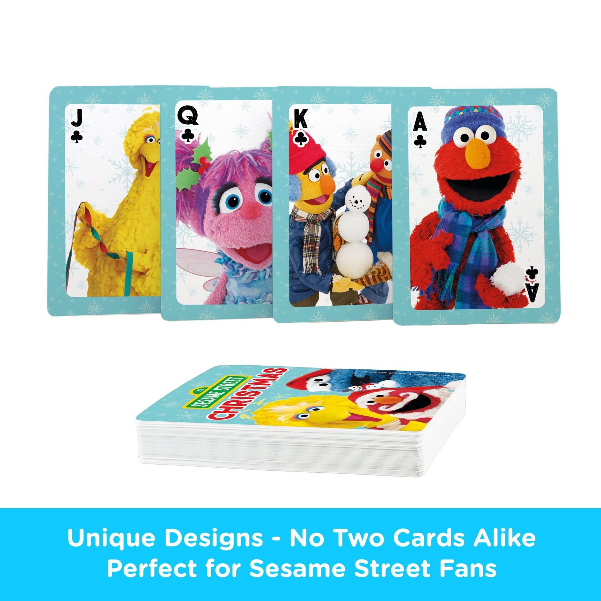 UNIQUE DESIGN ON EVERY CARD: This Sesame Street deck of playing cards includes 54 cards (52 playing cards and 2 jokers). Every single playing card features its own distinct Christmas themed design and art. No two cards are alike.
