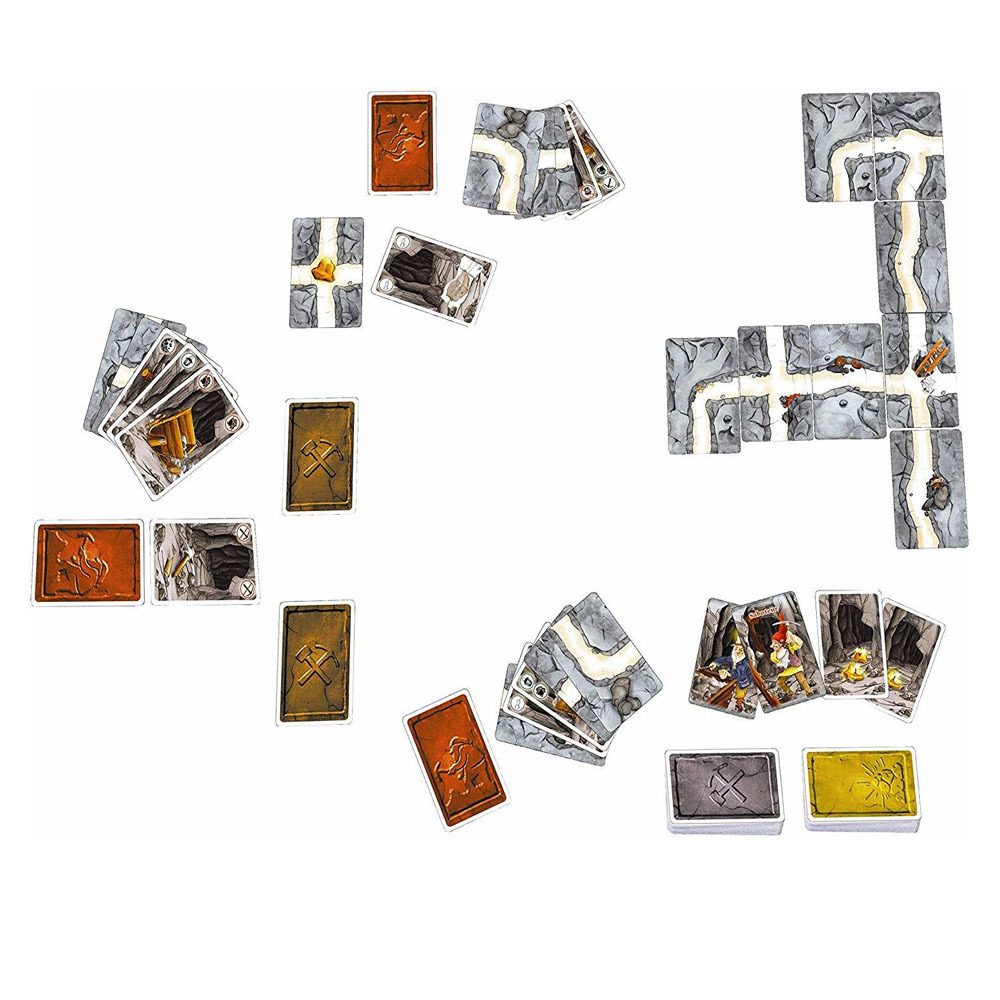 In Saboteur, you play dwarves digging for gold in the depths of a mine when suddenly, the pick-axe breaks, and the lantern goes out. The saboteur has struck again! But who is the saboteur and will he (or they!) stop you from reaching the treasure? If you succeed, gold awaits you. If you don’t, then to the victor goes the spoils. Whoever has the most gold nuggets after three rounds is the winner.