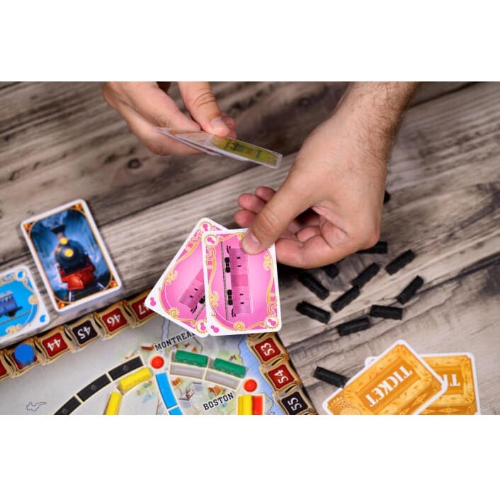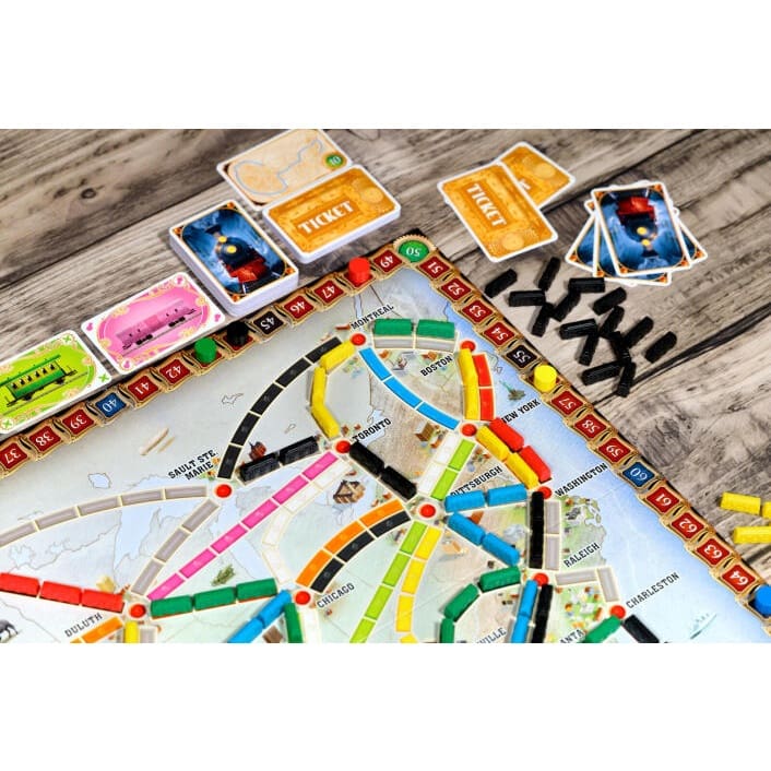• High-quality components: Features a full map of North America, 225 custom-molded train cars, 144 illustrated cards, and wooden scoring markers.
