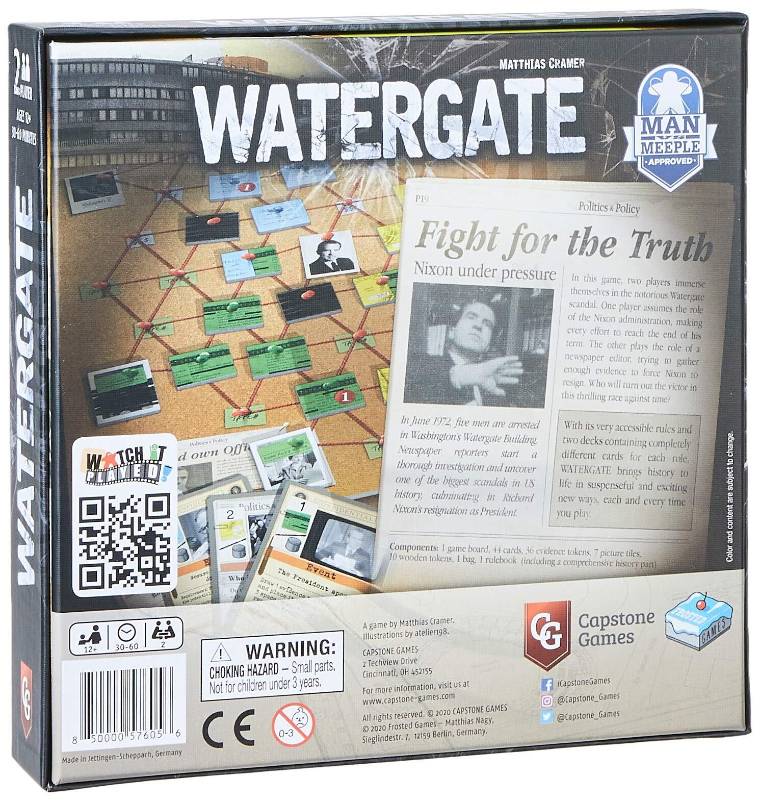 To win, the Nixon Administration must build up enough momentum to make it to the end of the presidential term, whereas the Journalist must gather enough evidence to connect two informants directly to the President. Of course, the administration will do all in its power to smother any evidence! Also included is a history of the Watergate scandal — great for educational purposes!