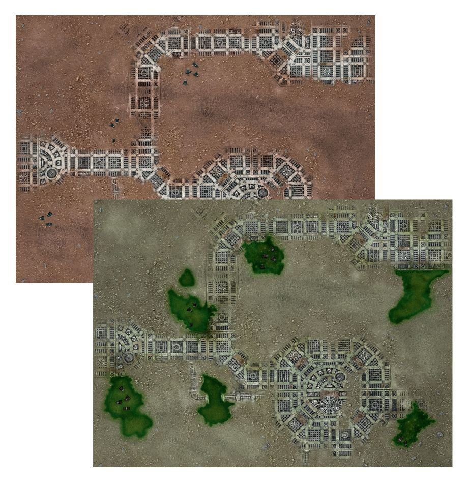 1x Double-sided Kill Team: Nachmund Gameboard: Fight over the battle-scarred outposts of the Nachmund Gauntlet on this double-sided 30″ x 22″ cardboard gameboard.
