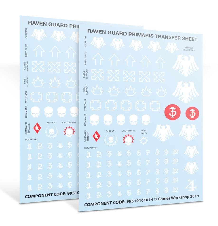 - 2 x Raven Guard Primaris Transfer Sheets (93 waterslide transfers each)