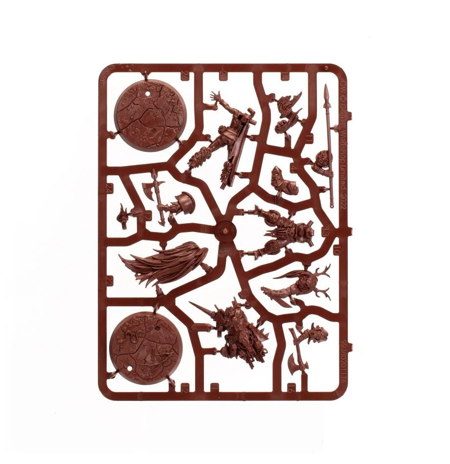 – The complete Gnarlspirit Pack warband. This group of Darkoath warriors pillage and raid the forest in the name of their patron spirits, led by a shaman-warrior as they live off the land. Quickly assemble your warband with four push-fit models, cast in a ruddy brown to stand out even when unpainted, complete with fighter cards and a full Rivals deck