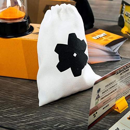 After 15 minutes, play stops. Time to board the starship. Who gets in first? The players with the most Influence board the ship first. Once full, the ship launches and the remaining players are left behind to die. Beware! Resources can also be used to nuke a player, completely eliminating them from the game, so watch the other players’ Resource token stockpiles!